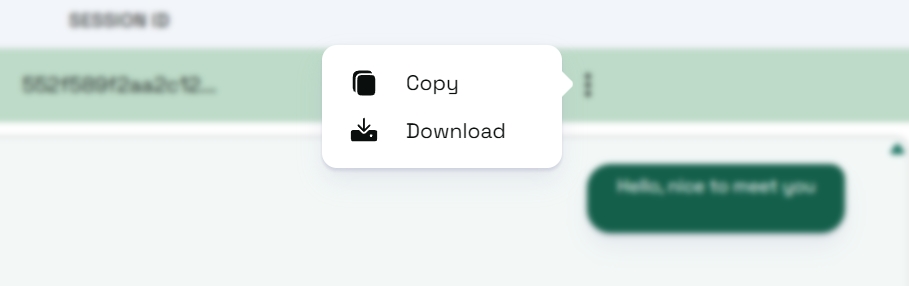 Copy or download: Use the three-dot menu on the right to copy or download the session data.